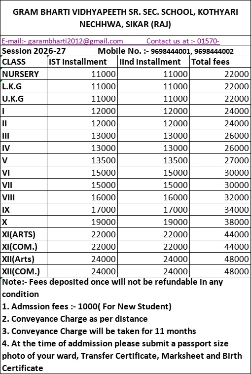 Gram Bharti Vidyapeeth School, Kothyari has always stood for academic excellence, and has produced remarkable results year after year. The core expertise of our teachers is to guide the students to holistic development. With a curriculum specially curated to foster growth, the purpose of the school is to build a better future for the students and for the community.